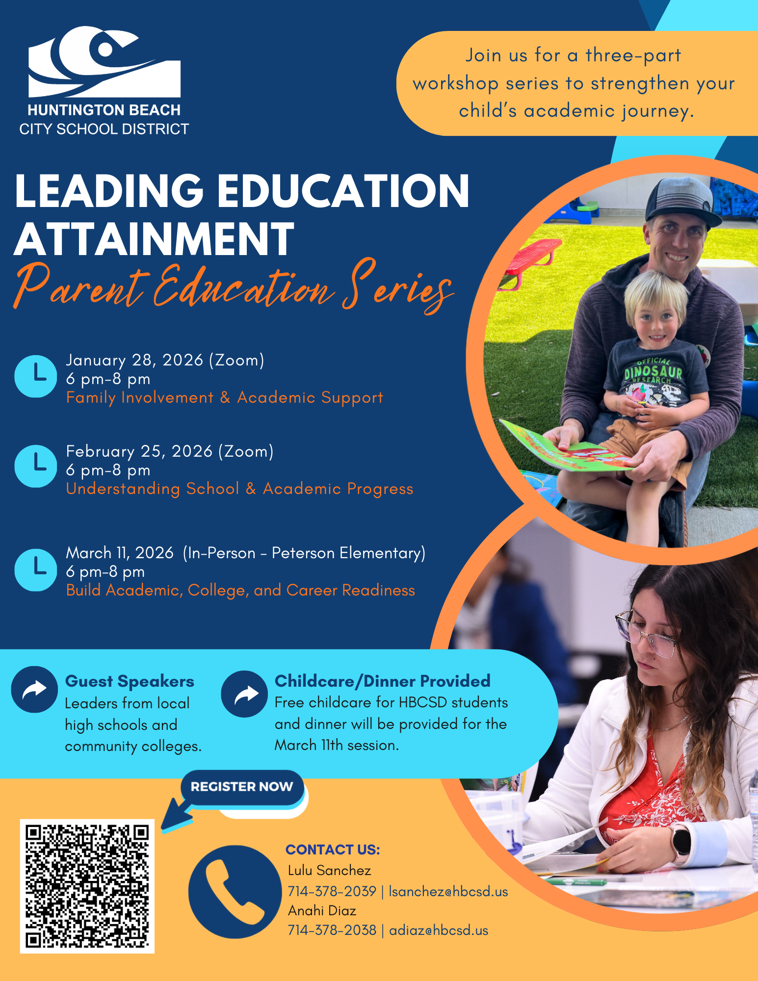Located in Huntington Beach, California, our district encompasses eight schools and a preschool program, where we proudly offer many educational opportunities. From our six elementary schools (TK-5) to our two middle schools (6-8) and our Preschool Academy, we provide students with a rich and rigorous learning experience. At HBCSD, education goes beyond textbooks and the classroom. We believe in the whole child and nurturing well-rounded individuals by providing students with opportunities to experience diverse activities. From academics and career technical education in STEAM to athletics, arts, and extracurricular activities, we empower students to explore their passions and develop valuable skills for future success while fostering their social-emotional growth.
