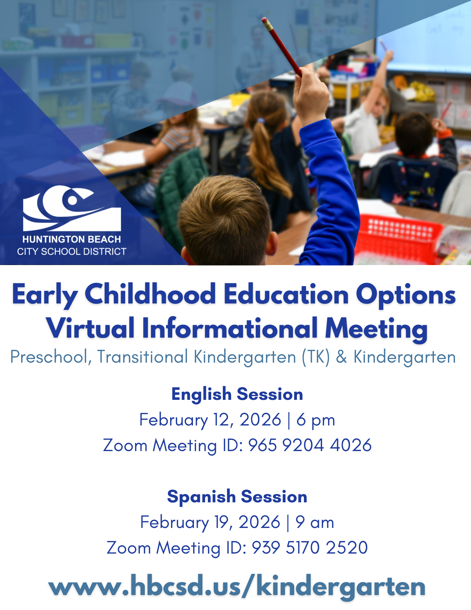 Save the Date! Early Childhood Education Options (Preschool, TK & Kindergarten) Meeting